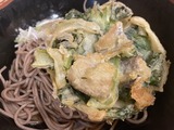 〆麺!空芯菜とツルムラサキのかき揚げそば@よもだそば(名古屋)